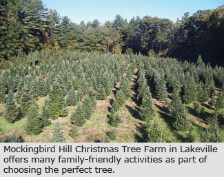 Turn tree shopping into a family outing at Mockingbird Hill Christmas Tree Farm in Lakeville, Mass.