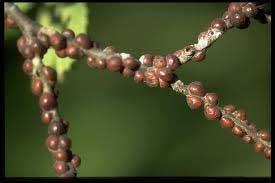 Scale insects feed on plant sap. Feeding by scales slowly reduces plant vigor. Heavily infested plants grow poorly and may suffer dieback of twigs and branches. Occasionally, an infested host will be so weakened that it dies. Sooty Mold a fungus often grows on the excrement of the insects. This is black in nature and can not be mistaken.