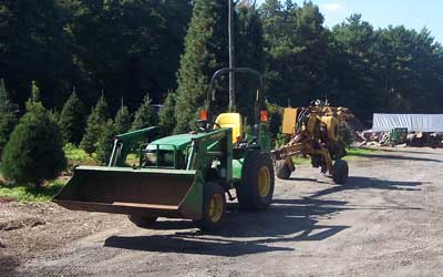 The Vermeer is a little bigger and faster on large stumps. A 20 H.P. front end loader with four wheel traction make clean up go quickly. Stump grinding debris make for great compost materials.